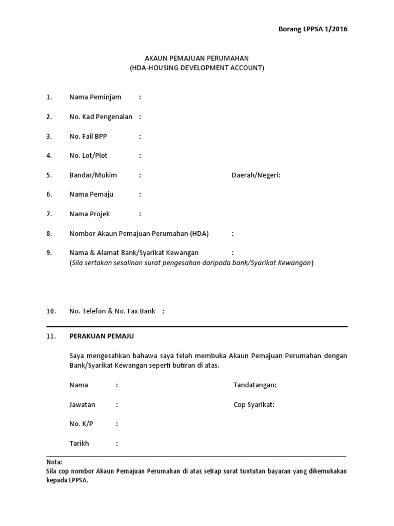Borang Lppsa 12016 Akaun Pemajuan Perumahan Beserta Salinan Surat Pengesahan Bank Pdf